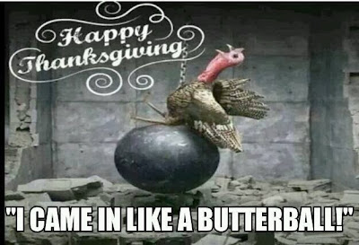 I don't know how many of you do this, but we did one side of the family yesterday, and today we head to the other side. Two Thanksgiving dinners in two days. I am heartily sick of turkey and dressing. If I have to eat another damn cranberry, I'll puke. I want a freaking Meat Lover's Pizza and a couple of beers. Really? Is that too much to ask?