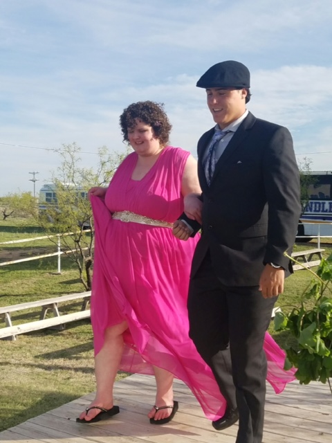 We got there around 7ish and lasted until 10ish. She ate, she danced, she laughed. She had a blast. I can't believe this is her last Prom. She's 22 this year and legally out of the school system. We've got a post-school program lined up starting in August, and between now and then we have Graduation. Next week, we go to the Art Room and get her cap and gown. The graduates-to-be will put them on and do the traditional Senior Walk through the High School, Junior High, and Elementary schools. We'll see how she does with that, but yes, there will be more pics. More happy TQ face.